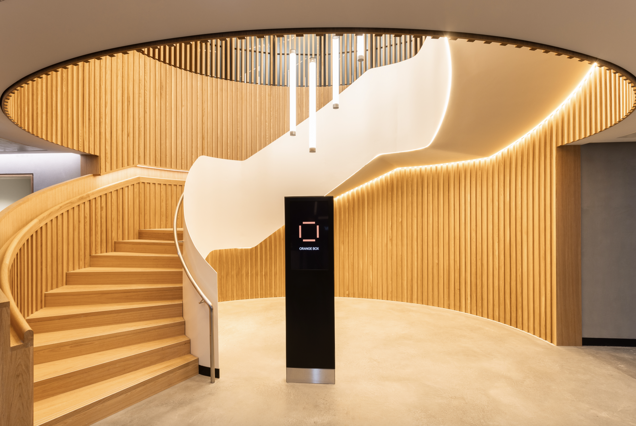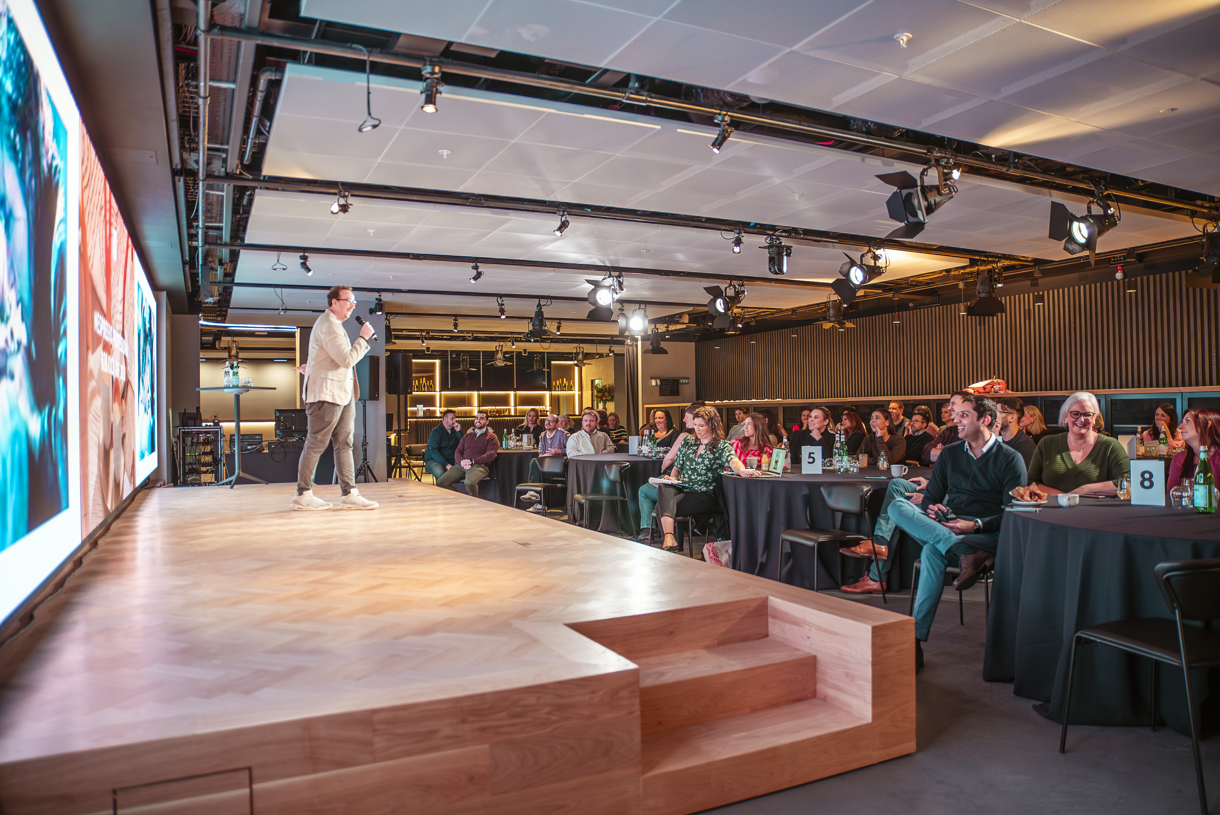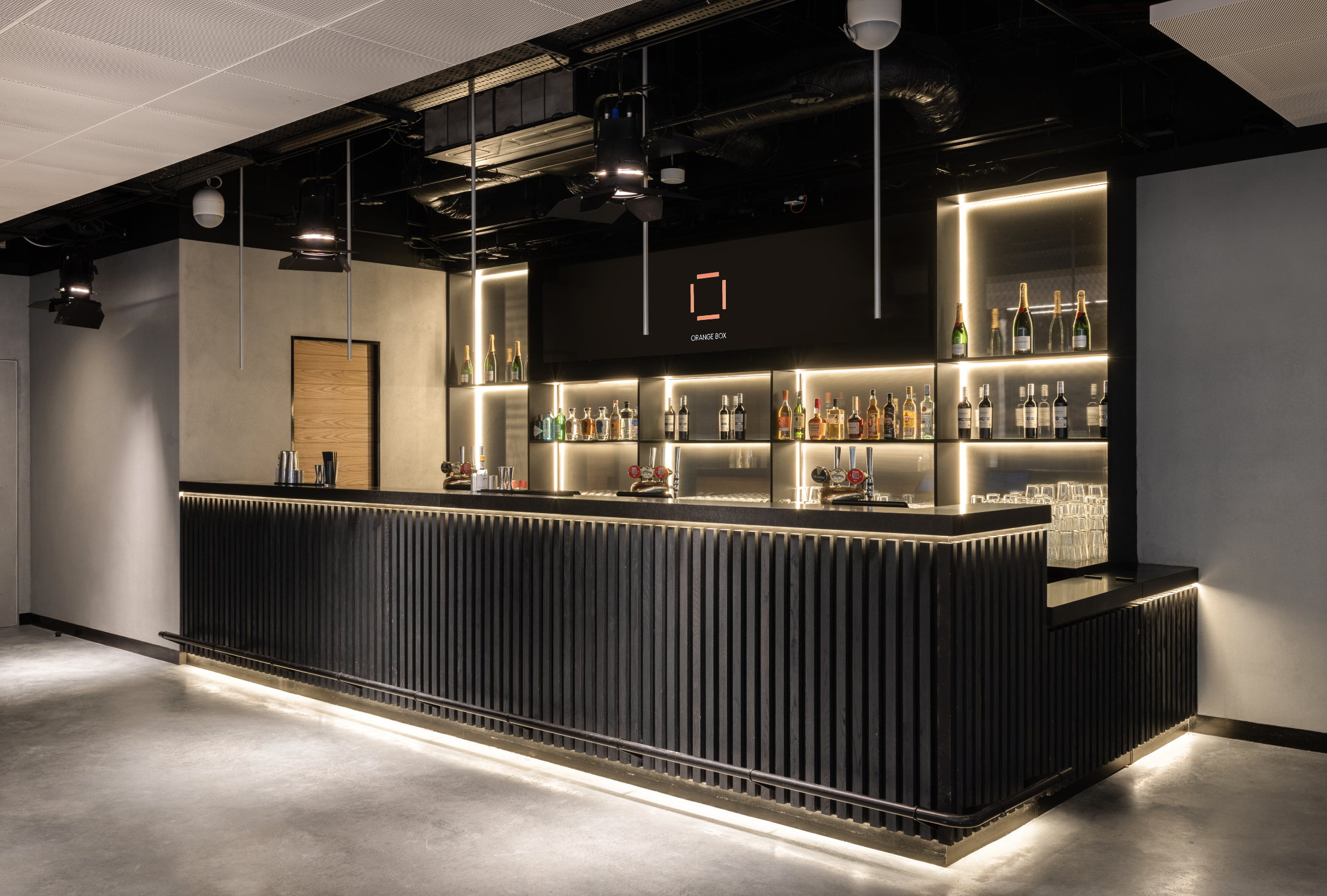 Orange Box features a Theatre Projects-designed space for panel talks, filming, product launches, receptions and parties. The venue is home to retractable theatre-style seating, a 10m wide LED screens, state-of-the-art AV systems and fully-serviced bars.